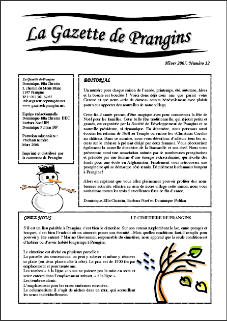 La Gazette de Prangins - Les titres
