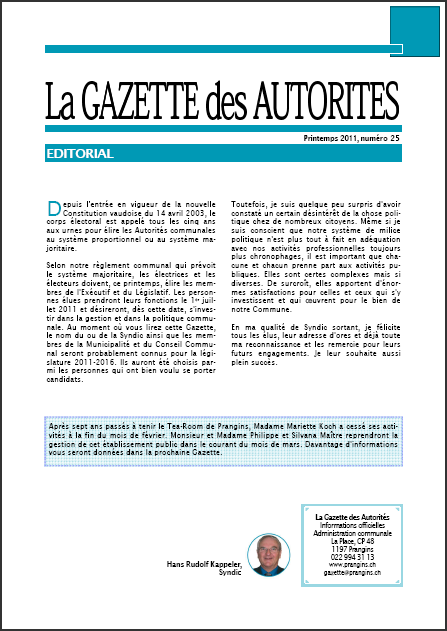 La Gazette de Prangins - Les titres :