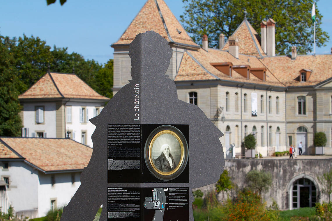 Les panneaux se veulent différents pour ne pas mélanger « la vie de château » à celle des villageois. Ce prolongement devrait inciter les visiteurs du Musée à découvrir le village. Attrait touristique, mise en valeur du patrimoine historique, cette démarche s’inscrit dans une vision plus large de requalification du Cœur de Prangins.